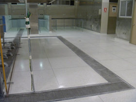 Instalación mecanizada de Terrazzo Pulido para ALTO TRANSITO - Hospital Regional de ICA, COSAPI