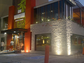 Revestimiento con tablero de granito en SS.HH. y oficinas Banco ICBC, BINSWANGER